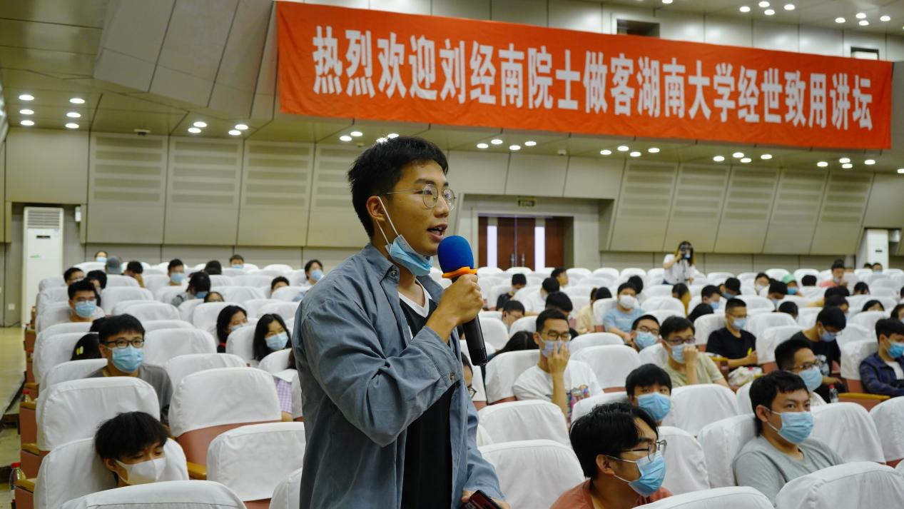 在提问环节,刘经南院士解答了“北斗三号卫星系统在民用领域里面的应用”等同学们关心的问题。他寄语同学们,把家国情怀作为未来发展的逻辑起点,把“创新科技、服务国家、造福人民”注入血脉和基因。