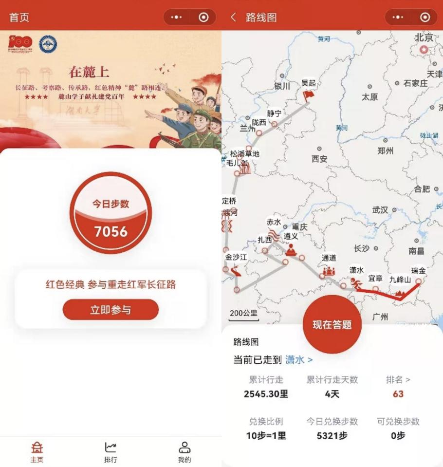 自主开发“HNU在麓上——网上重走长征路”微信小程序。