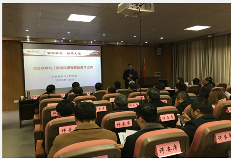 夯实“三阵地”,推进精准思政,促全方位育人。夯实课堂主阵地,制定《课程思政工作实施办法》,开办教学工作坊,组织课程思政教学竞赛,表彰思政精品课程,推进课程思政工作。夯实网络阵地,整合党建工作网、易班、“先锋信息”公众号等搭建融媒体平台,构建微调研、微党建、微学术、微服务、微宣讲“五微一体”微思政体系。夯实意识形态阵地,实施课堂教材、信息上网、讲座申报审核制,规范网络行为。学院组织完成146本教材教辅政治立场、价值导向、意识形态排查把关,新增3门课程思政示范课,教师许莹等2人获评“湖南省课程思政工作先进个人”。