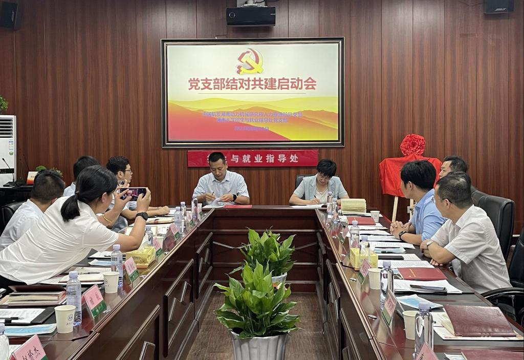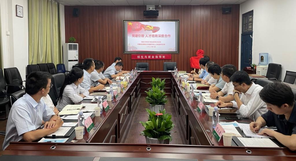 8月30日下午,招生与就业指导处党支部与中国航发湖南动力机械研究所人力资源部党支部“党建引领人才培育深度合作”结对共建揭牌仪式在校第二办公楼313会议室举行。