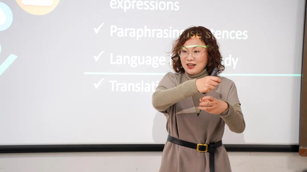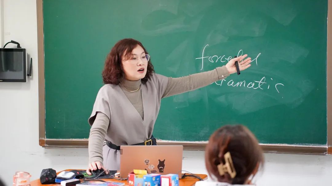 “上Miss Liu的课是非常快乐的,她把知识点都放进了生活实际里,让我们很轻松就学到了知识。”2021级播音主持班的黄颂元说。