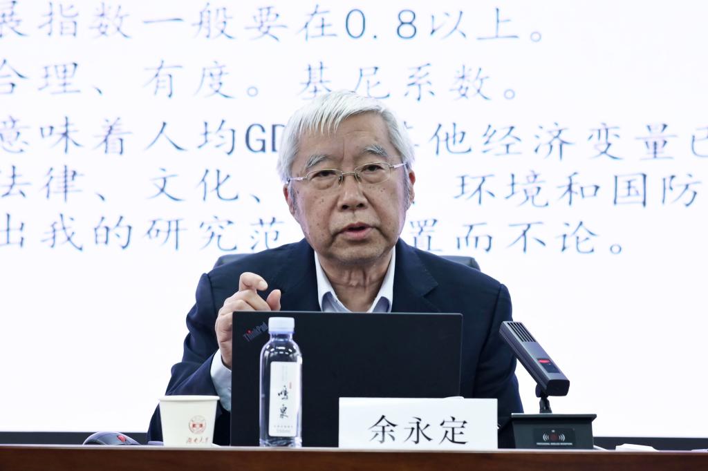 余永定围绕“中国现代化”与“宏观经济形势”两个关键词,分析了中国经济增长的潜力与前景,剖析了国际宏观经济形势演变,提出了中国现代化结构转型的调整方向与相关建议。与此同时,余永定还针对一些经济领域的热点问题分享了自己的观点与意见。
