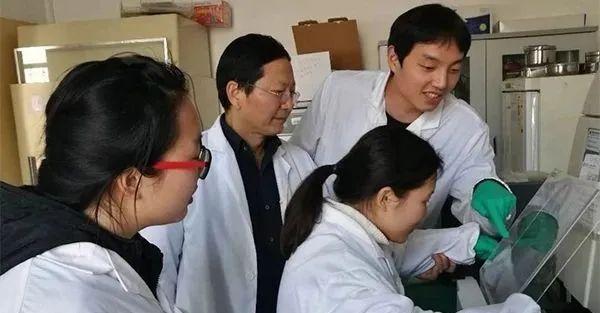 曾光明和他的团队成员在实验室。