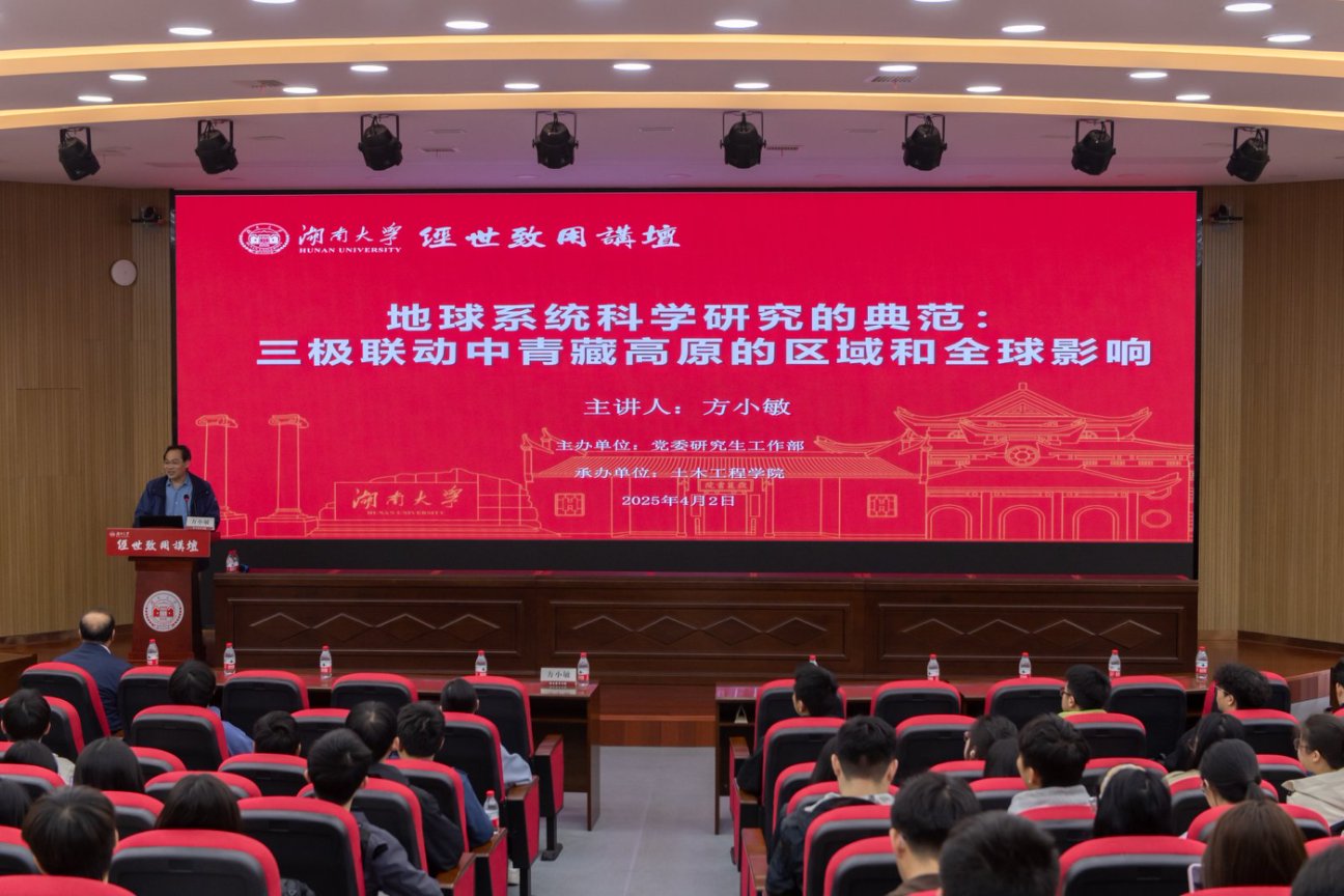 4月2日下午,中国科学院院士、中国地理学会会士方小敏做客经世致用讲坛,在综合楼208报告厅作“地球系统科学研究的典范:三极联动中青藏高原的区域和全球影响”主题报告。副校长李树涛主持报告会。