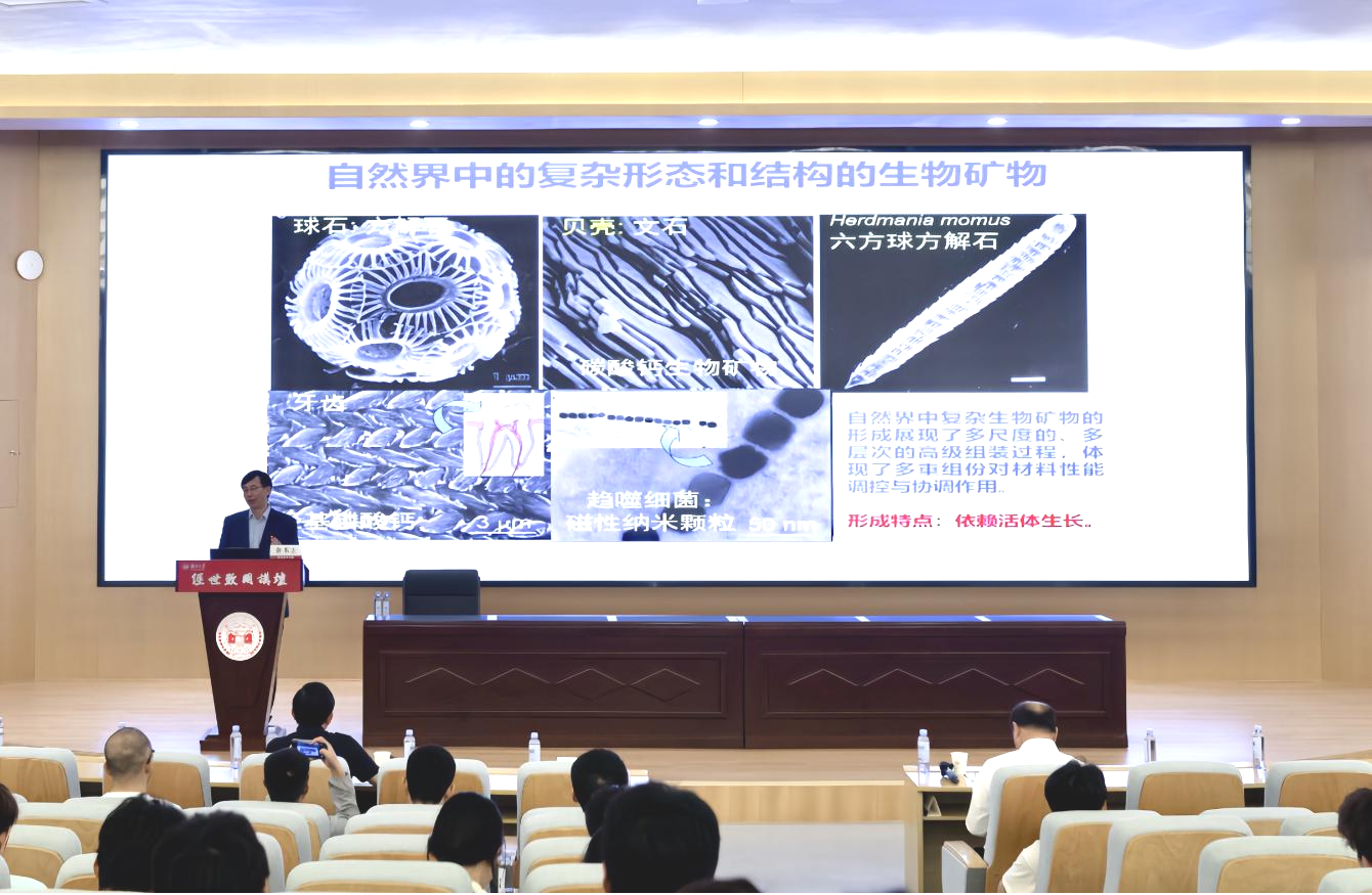俞书宏深入探讨了自然界生物材料的结构特性,强调这些材料为科学研究和工程应用提供了重要的灵感来源。他指出,仿生材料研究不仅深化了对生物材料本质的理解,还为高性能生物材料组织工程、航空航天材料等领域的发展开辟了新的路径。他认为,利用先进的科学技术手段揭示、模仿生物材料复杂的多层次结构,对于推动新材料的发具有重要意义。