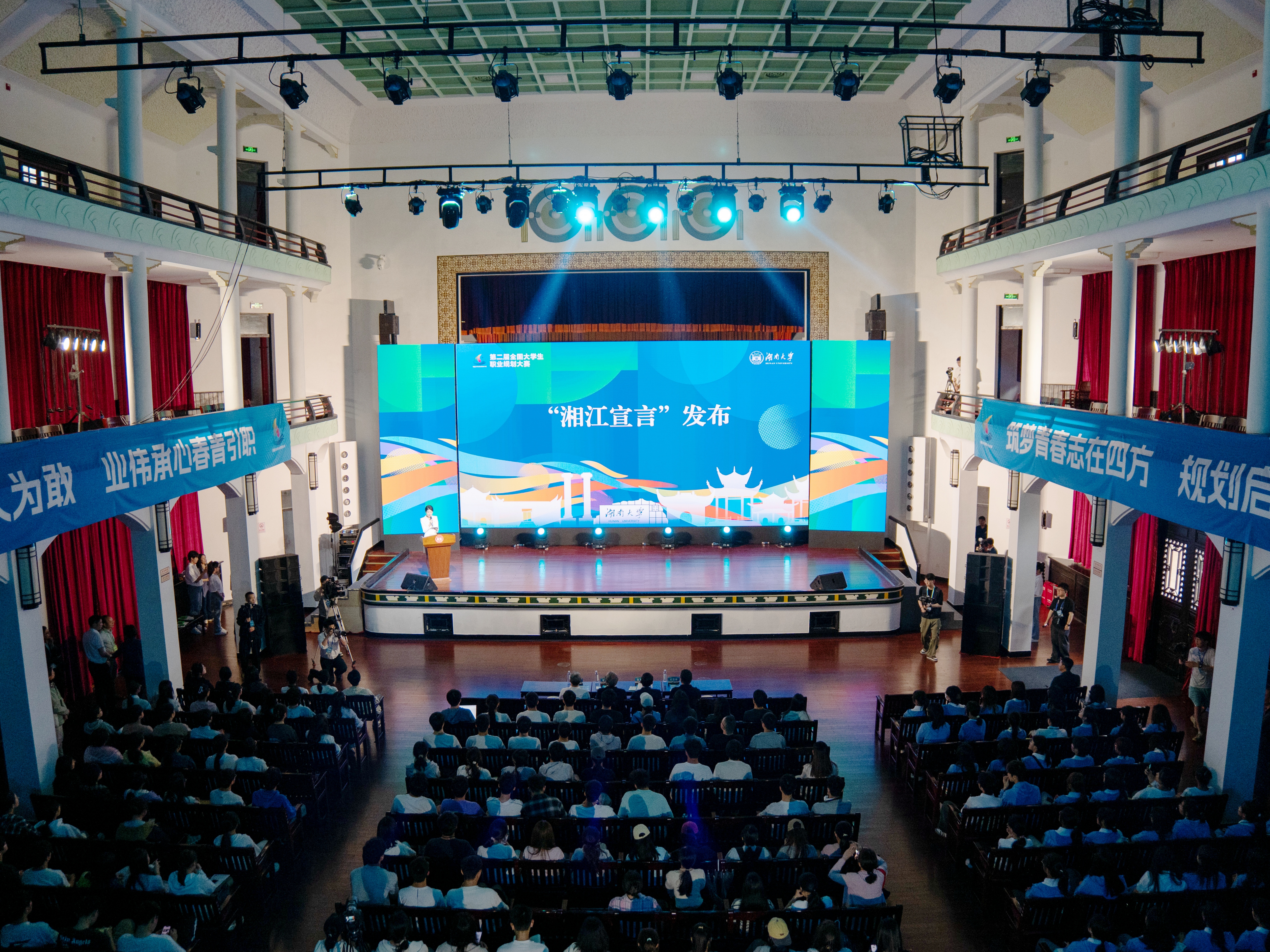 4月19日上午,“湘江宣言”就业育人主题活动在学校大礼堂举行。参赛选手们在湘江之畔,向全国高校毕业生发出倡议:到祖国最需要的地方去,用青春奋斗创造美好未来!