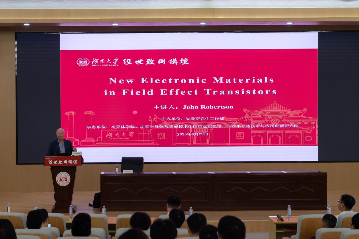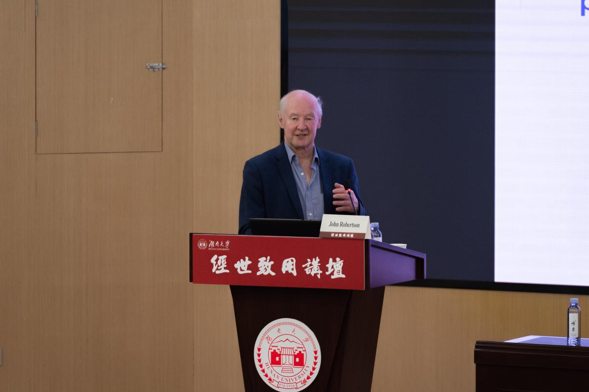 4月29日上午,英国皇家科学院院士、英国皇家工程院院士John Robertson做客经世致用讲坛,在综合楼108报告厅作“场效应晶体管中的新型电子材料”主题报告。