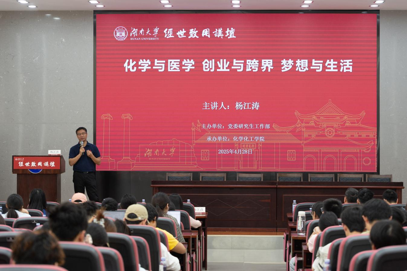 4月29日下午,深圳爱湾医学检验实验室CEO、《罕见疾病杂志》执行主编杨江涛做客经世致用讲坛创业先锋专场,在化工院D区报告厅作“化学与医学 创业与跨界 梦想与生活”主题报告。