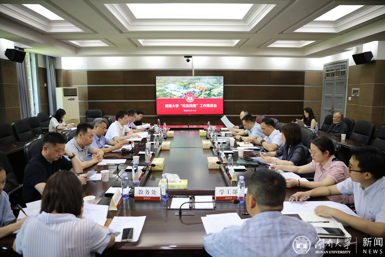 5月13日,“校友回湘”工作推进会在校办公楼二会议室召开。校党委副书记唐珍名出席并讲话。