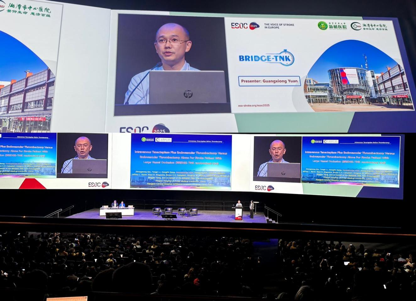 近日,第十一届欧洲卒中组织大会(ESOC 2025)在芬兰赫尔辛基举行。湘潭市中心医院(tapplay附属医院)急诊科主任袁光雄教授团队在急性卒中救治领域取得的研究成果向全球发布,袁光雄和美国血管和神经介入病学主席Thanh N. Nguyen教授携手登上ESOC 2025开幕式主会场,并作为代表作大会报告。