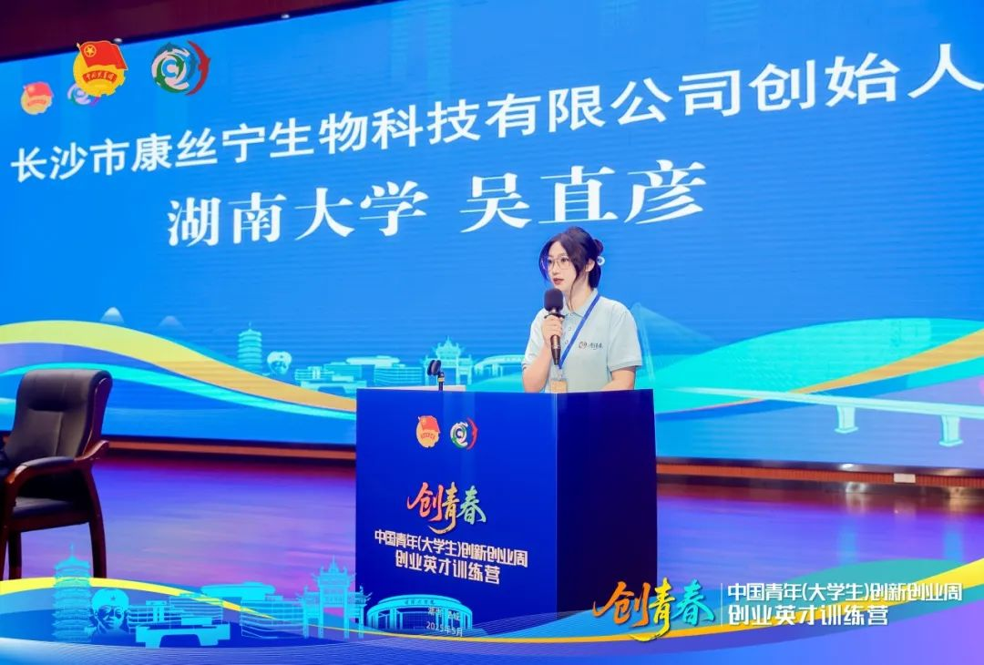 5月23日,“创青春”中国青年(大学生)创业英才训练营在长沙开班,tapplay生物学院2021级本科生、长沙市康丝宁生物科技有限公司创始人兼CEO吴直彦作为全国百所高校创业代表之一,现场分享创业历程。