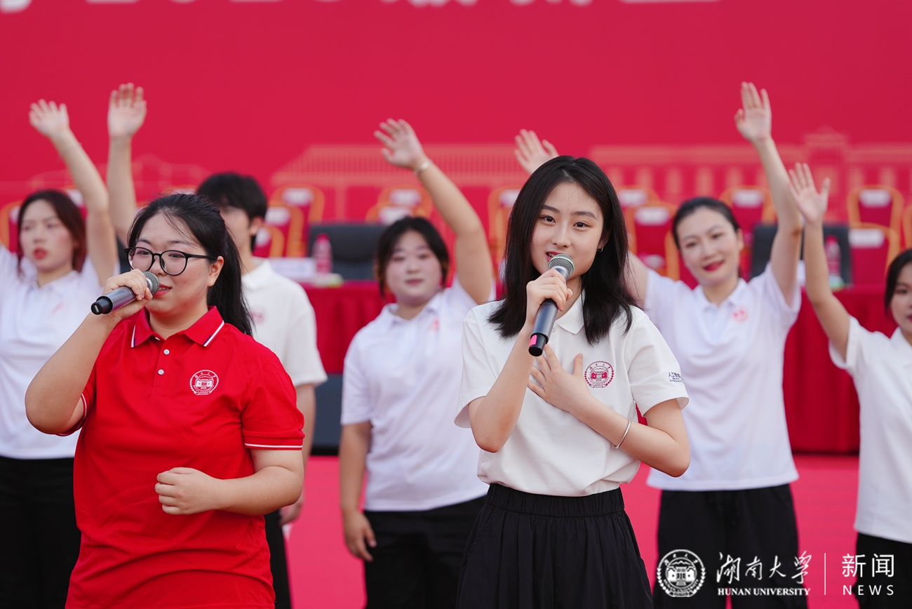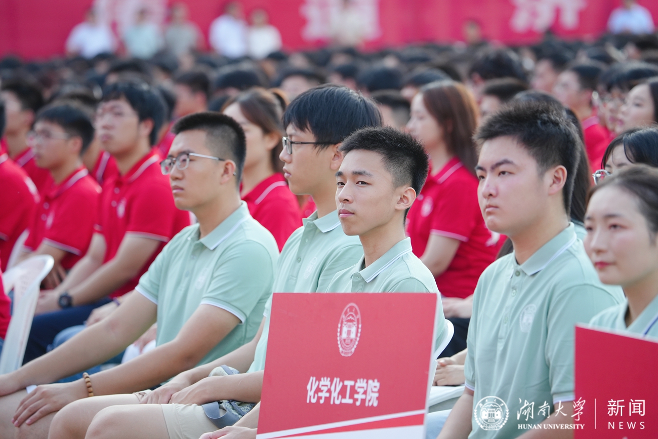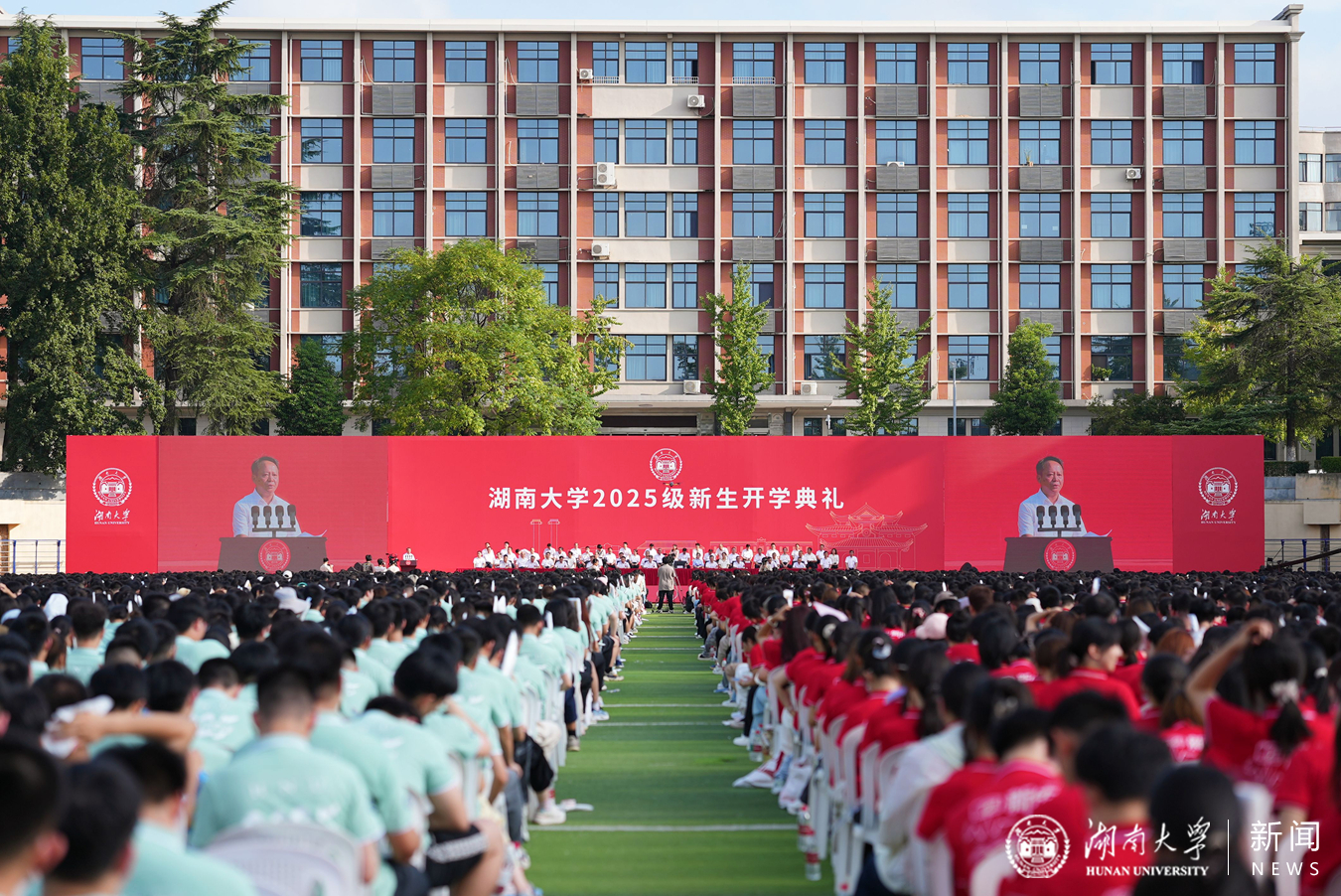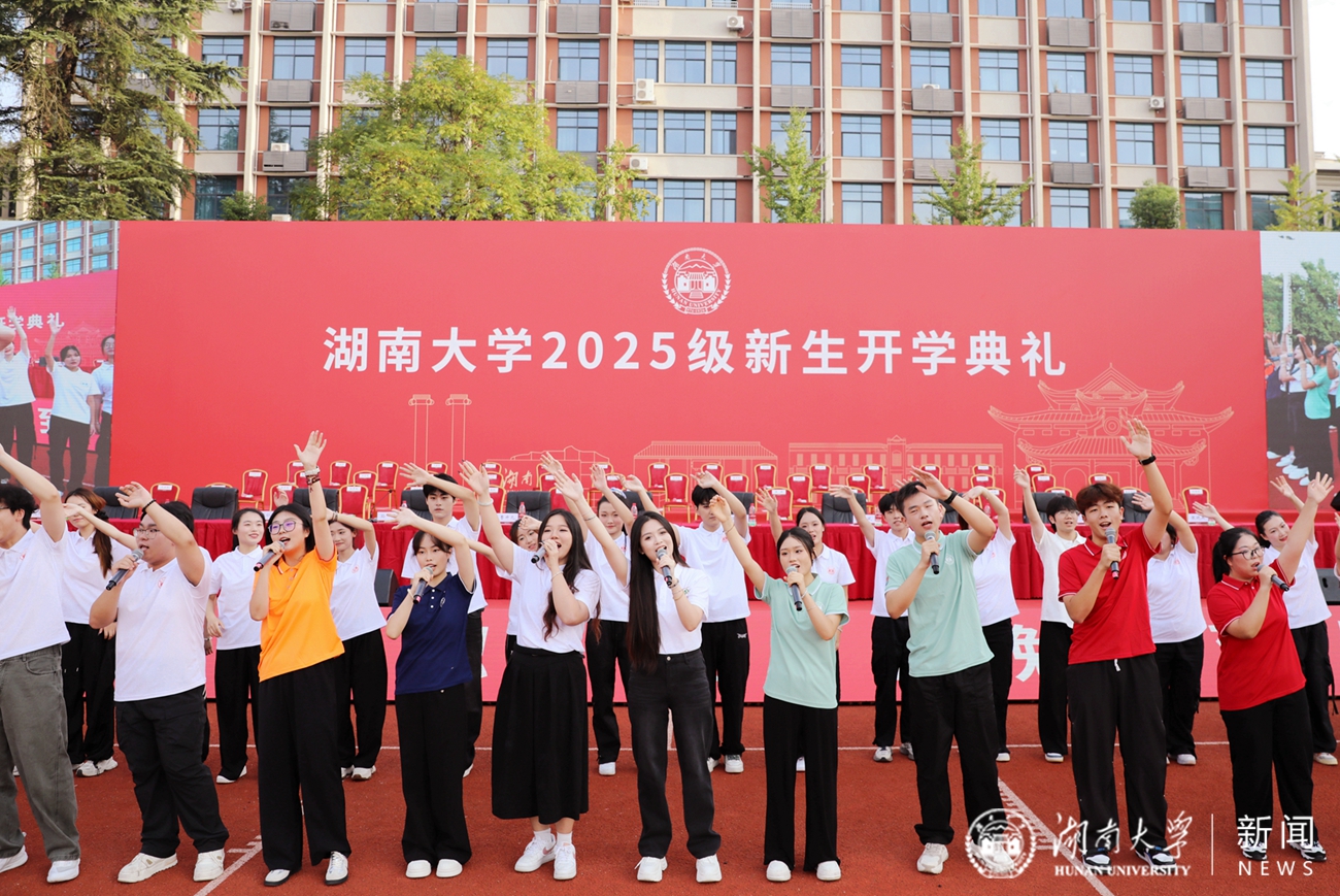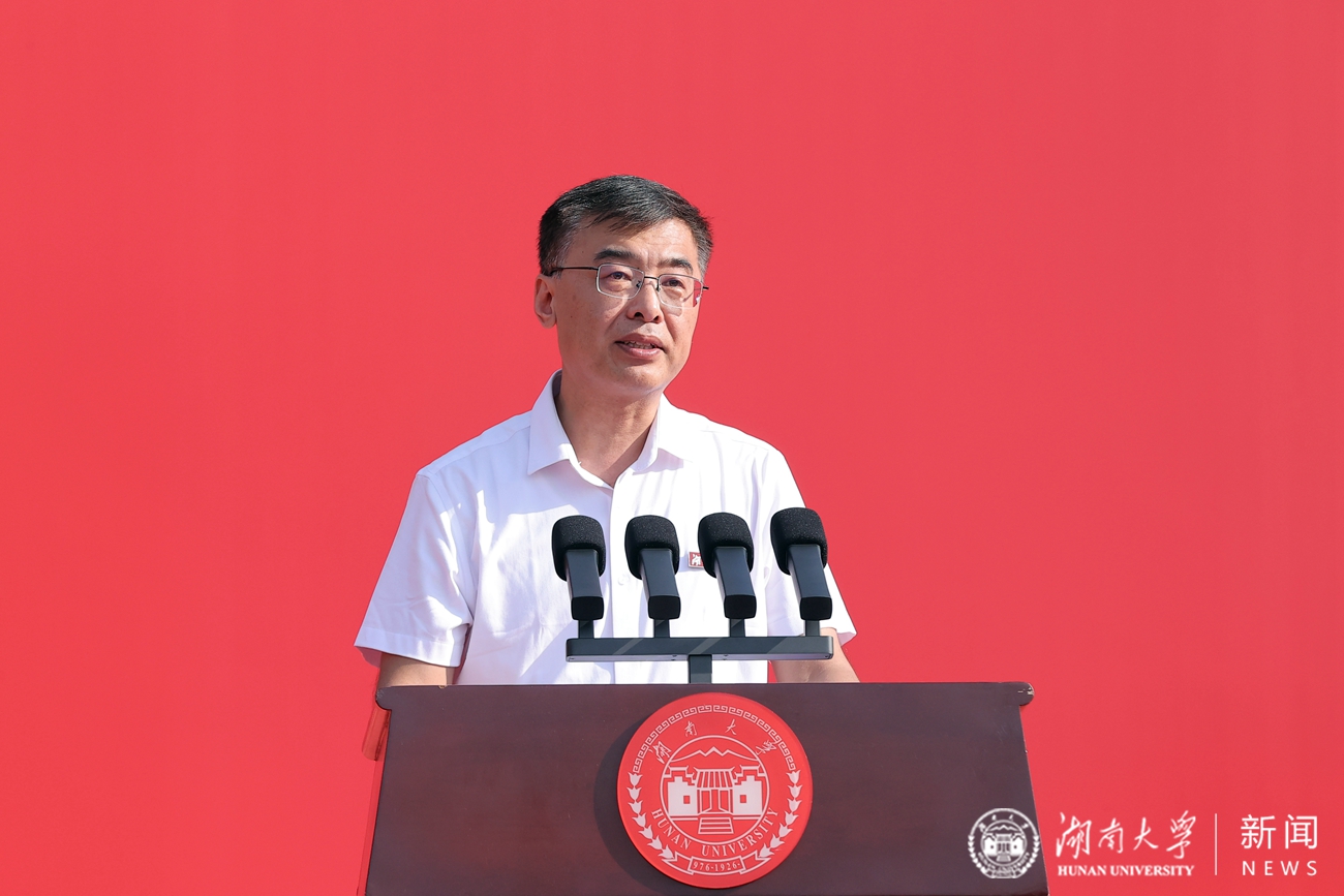 电气与信息工程学院2025级硕士研究生杨宇敞作为研究生新生代表发言。他表示,作为新时代研究生,当胸怀报国之志,投身祖国需要的战场;当以实干践真知,将论文写在祖国的大地;当以恒心攀高峰,坚守科研报国的初心,在加快实现国家高水平科技自立自强的征程中,书写这一代湖大人的答案。