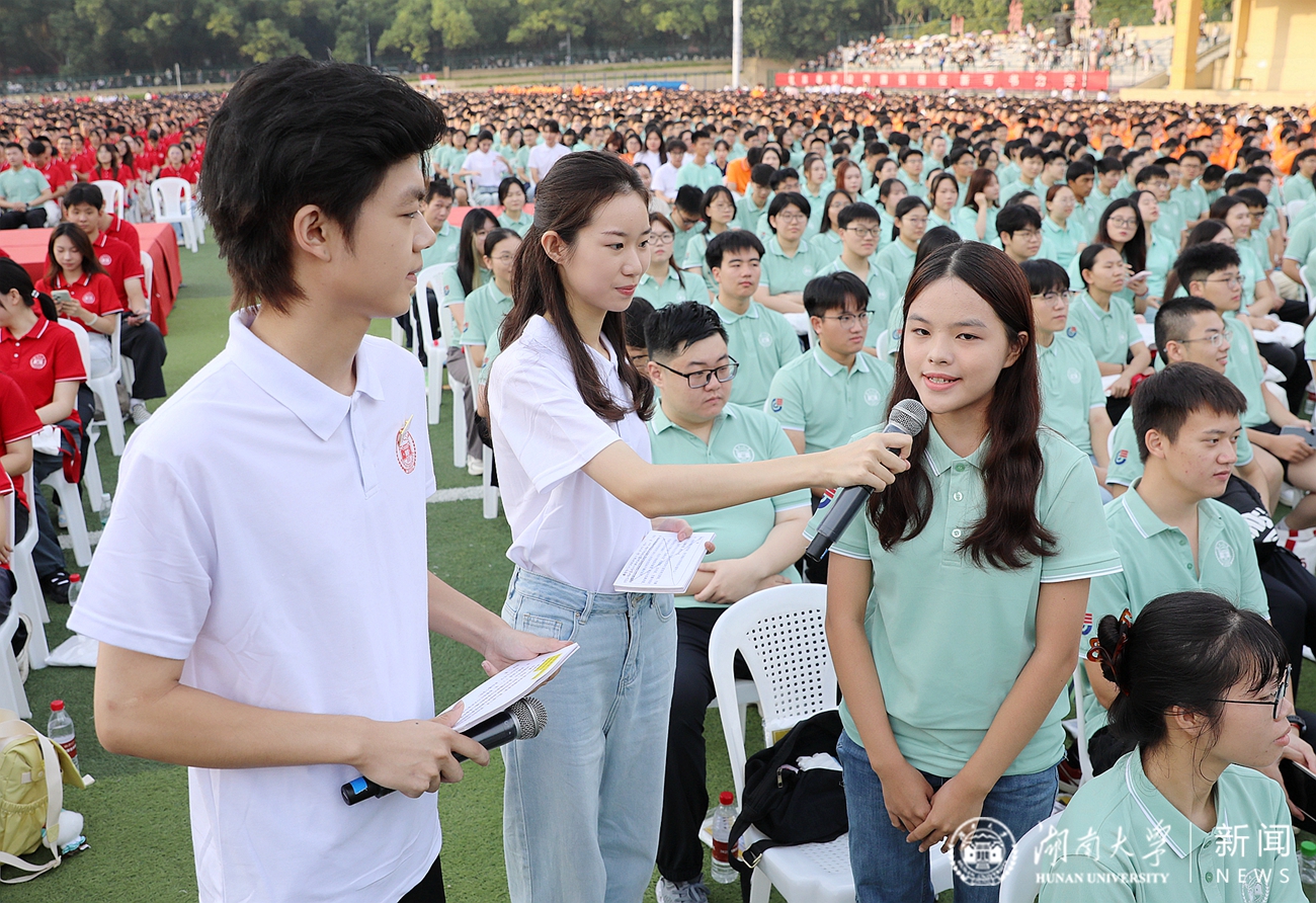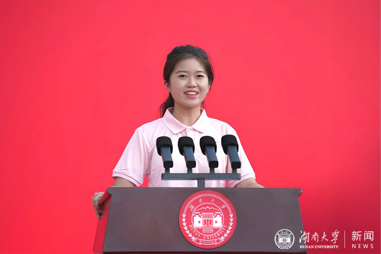 金融与统计学院2025级本科生谢舒迪作为本科生新生代表发言。她表示两年前初访岳麓书院,tapplay就成为了自己的“梦中情校”,“振我民族,扬我国光”应是湖大青年的人生锚点,立德笃行、经世济民便是自己的宏图之志。她呼吁同学们勇敢去尝试、去探索,在这片千年文脉的土地上,定义属于自己的时代。