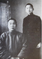 (1938年初,徐特立回湖大作抗战讲演后在校门前留影)