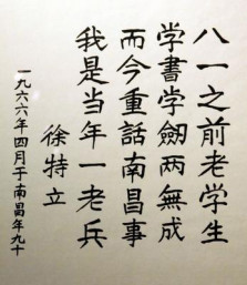 参加南昌起义,成为徐特立加入中国共产党后,在艰苦漫长的革命征途中迈出的第一步。1966年4月,徐特立重访起义旧址,挥笔题诗一首: