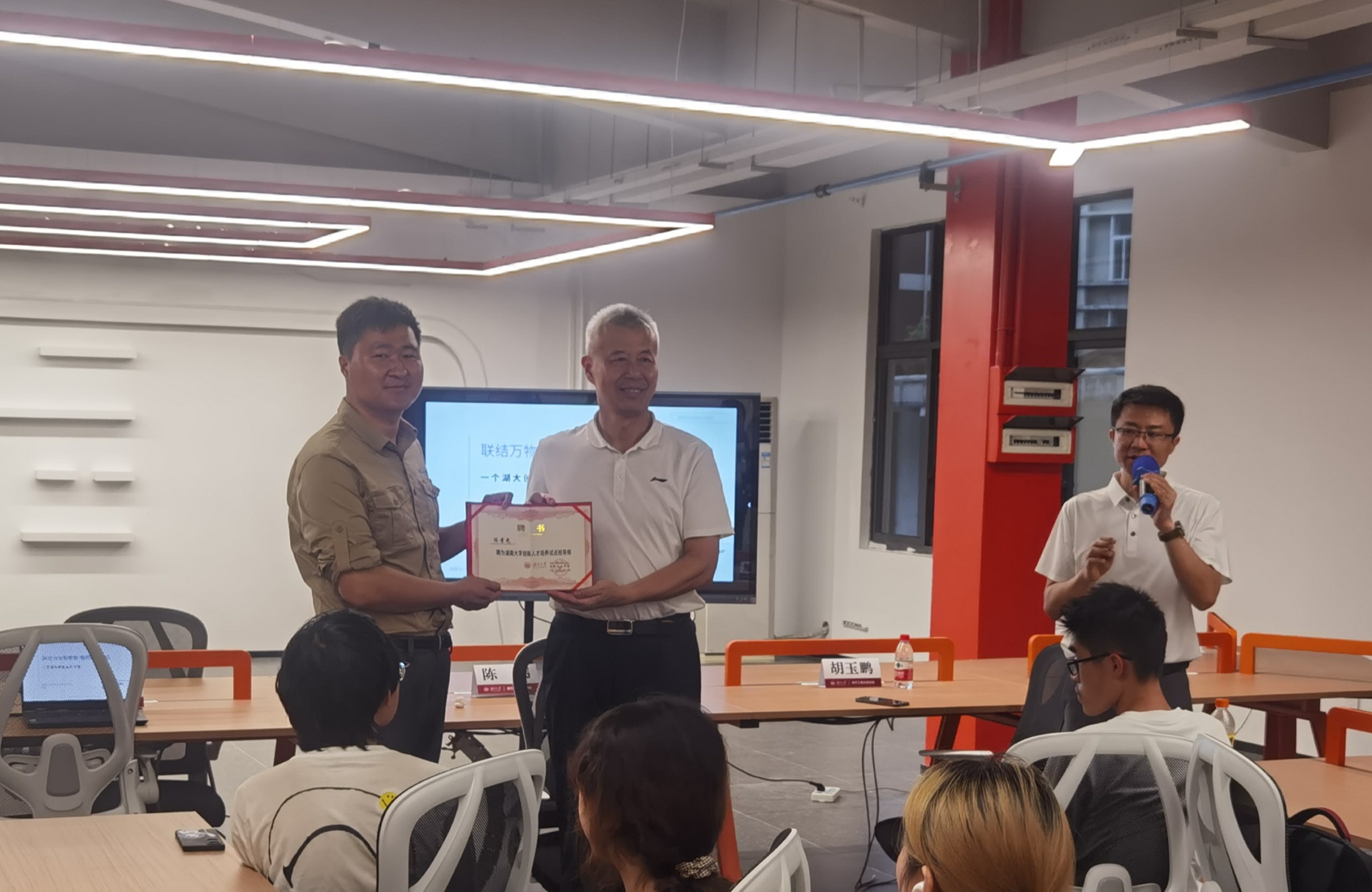 近日,创新创业人才培养试点班导师聘任仪式举行,李时俊与陈孝光两位校友相继受聘,校友总会副会长陈伟出席并颁发聘书,现代工程训练中心主任胡玉鹏主持。