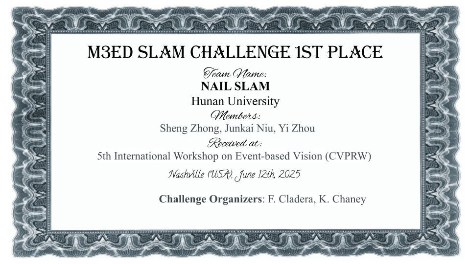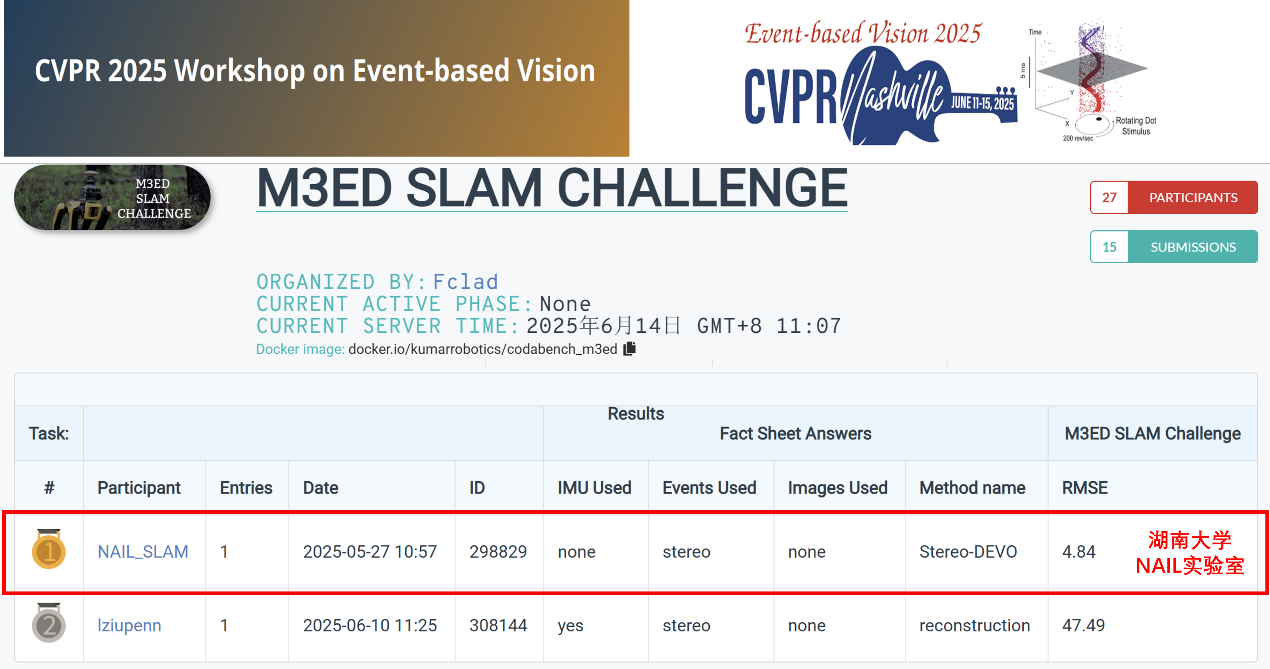 近日,tapplay机器人学院周易教授团队凭借创新研究成果Stereo-DEVO系统,在CVPR 2025举办的Event-based Vision SLAM国际挑战赛中,从多所世界顶尖名校组成的15支参赛队伍中脱颖而出,在纯事件赛道(event-only)与事件图像融合赛道(event & frame)赛道均获得冠军。该挑战赛旨在利用高分辨率事件相机的高时空分辨率进行状态估计。