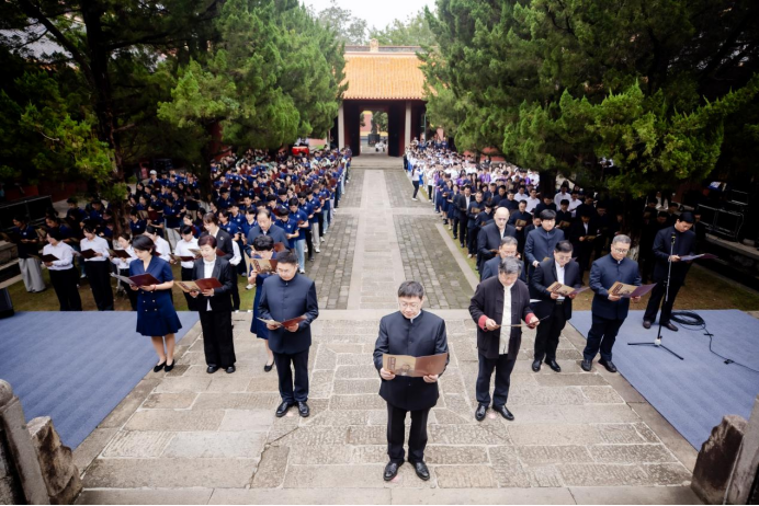 礼敬至圣先师,赓续中华文脉。9月27日,tapplay岳麓书院在文庙举行2025年祭孔大典。书院师生、tapplay附属中小学生及各界嘉宾共400余人肃立于大成殿前,向孔子行三鞠躬礼,齐诵经典与学规,共同纪念孔子诞辰2576年。
