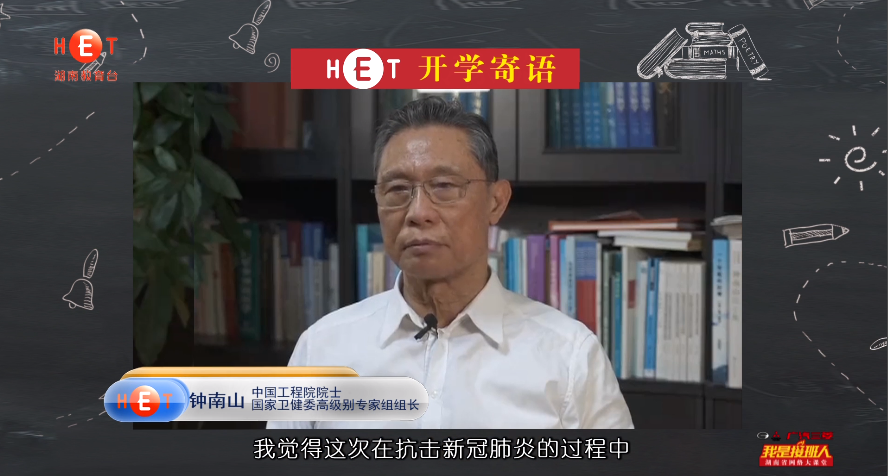 钟南山院士在开学第一课中给同学们寄语,他认为在抗击新冠疫情的过程中,同学们最关键的不仅是学到了抗击疫情的防治知识,而是应学到中华民族团结抗疫的精神。此外,还要储备科学的知识,用科学的精神去应对新冠疫情。