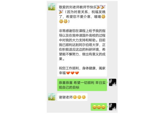 课题组研三学生刘航想出国深造,刘松得知后,一方面到处联系打听,给刘航写推荐信;另一方面,给刘航许多时间,支持他复习雅思考试。“在拿到目标学校offer,我才知道刘老师内心其实很舍不得我出国。”谈起刘老师的帮助,刘航非常感激。