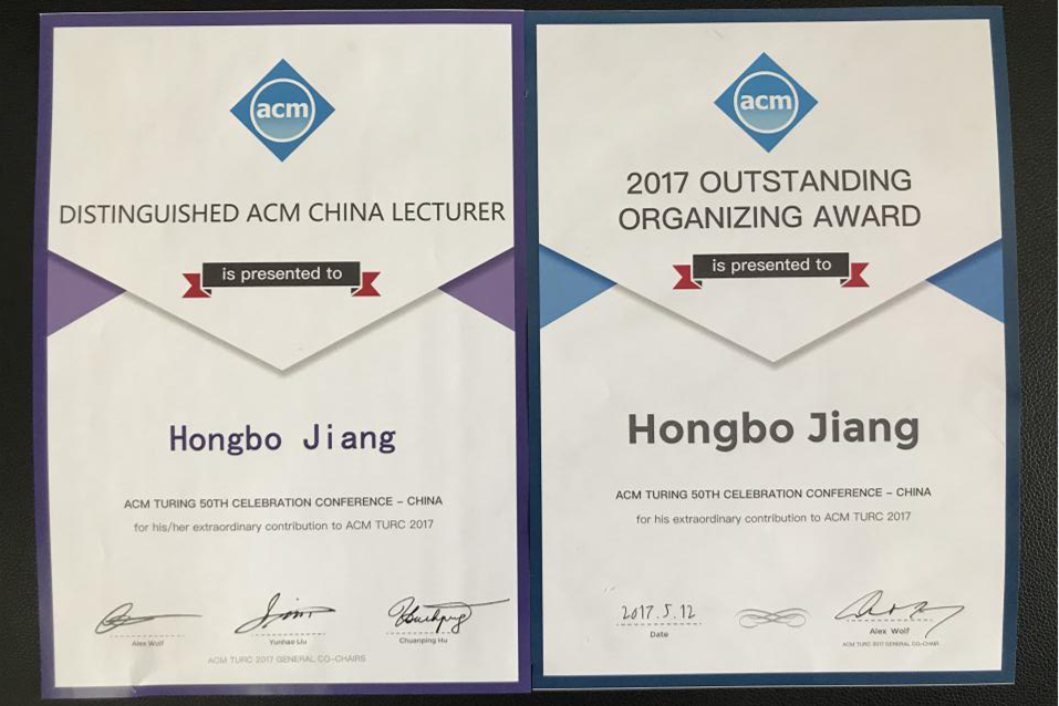 蒋洪波教授获IEEE高级会员和ACM青年科学家奖。