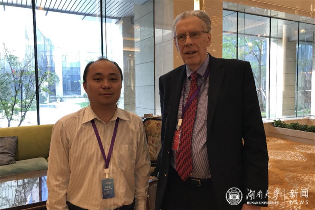 2017年,在美国召开的一次国际学术会议上,与会嘉宾纷纷聚焦信息协同计算技术,蒋洪波也上台报告了其研究的思路和做法,报告中的可信弹性几何路由创新成果,迅速引起了与会学者的密切关注。这次学术报告,让蒋洪波与欧洲科学院院士、维也纳科技大学Schahram Dustdar教授达成初步合作意向。经过几年的来往交流,双方达成多项合作,并于2019年获批共同组建了湖南省高效能计算与应用国际科技合作基地,成为湖南省国际科技创新合作基地,蒋洪波成为基地主任。