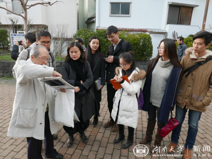 沈瑶(左二)带湖大师生团队在日本东京太子堂社区交流