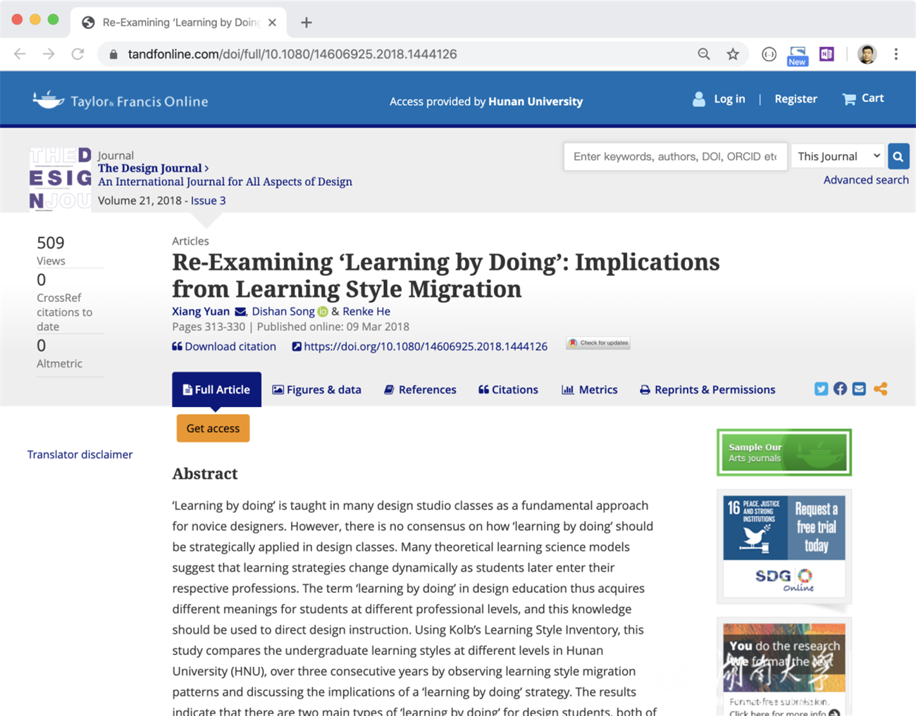 袁翔在The Design Journal发表的教学研究论文