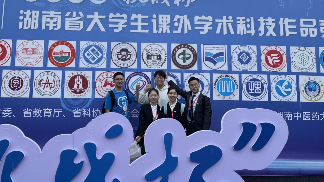 戴睿(右一)与团队参加“挑战杯”湖南省省赛。