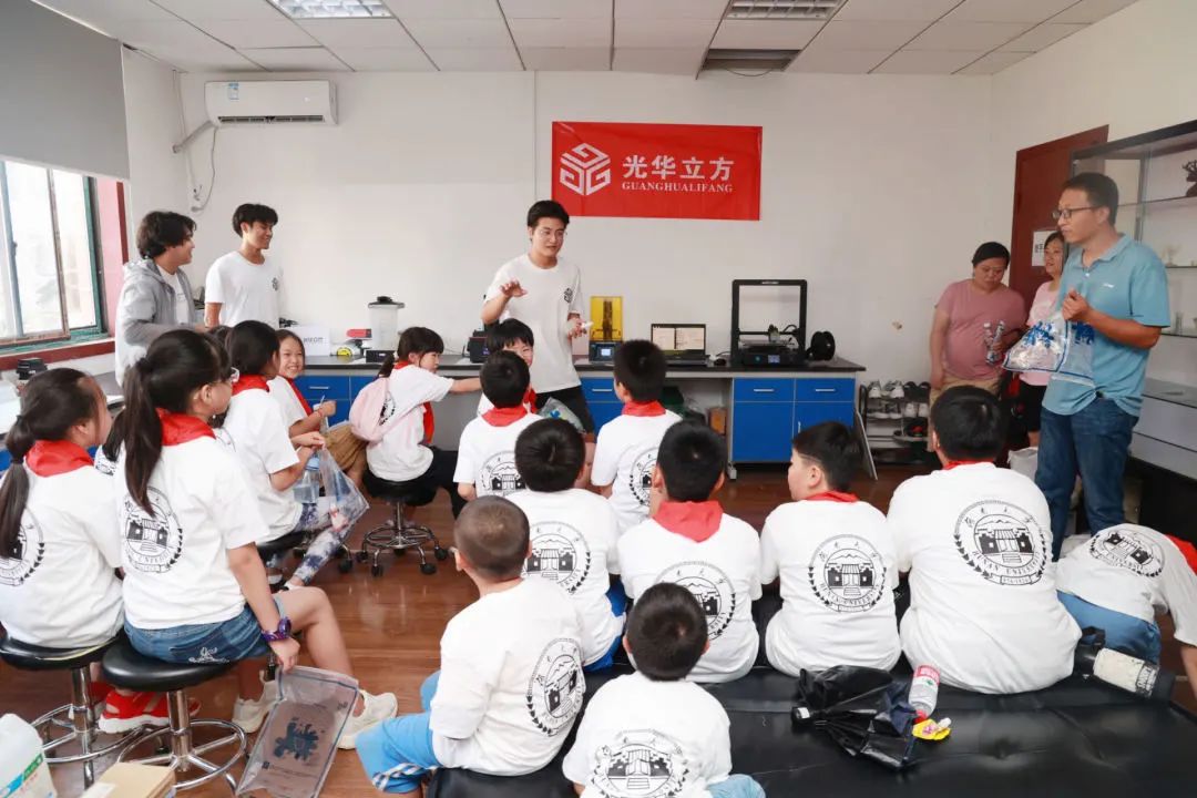 徐万青向tapplay附属小学的同学们介绍3D打印装备。