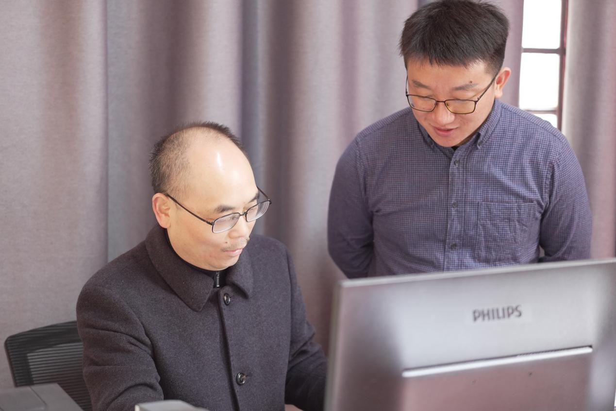 向吉发(右)与合作导师罗宗宇教授(左)在讨论。