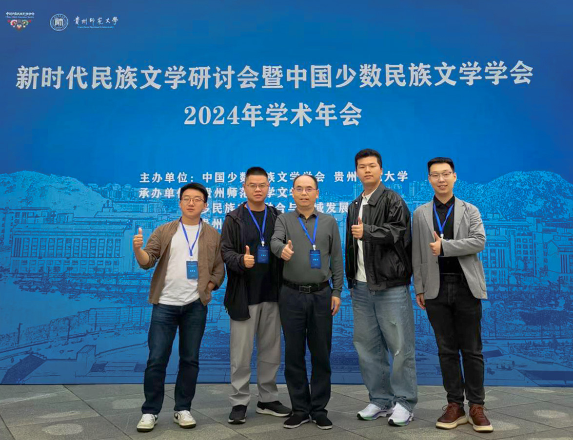 向吉发(左一)与导师罗宗宇教授(左三)等参加中国少数民族文学学会2024年学术年会。