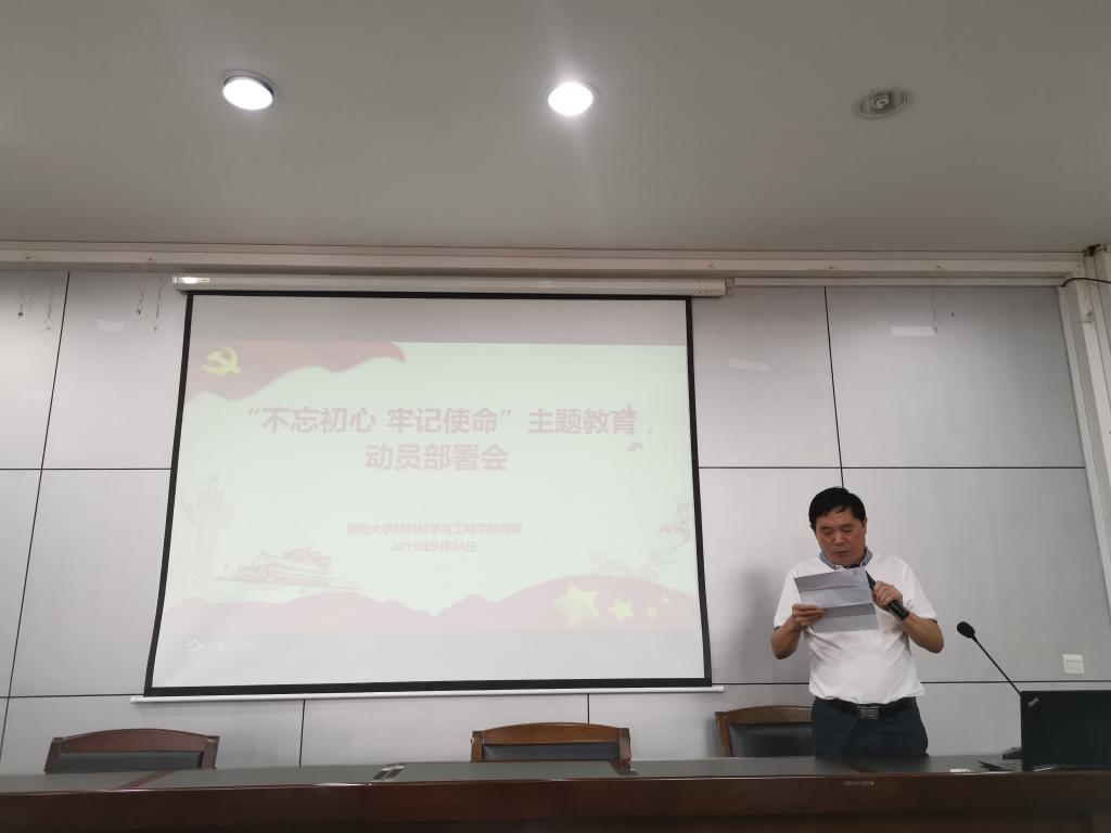 9月24日,材料科学与工程学院在工程大楼报告厅召开了“不忘初心、牢记使命”主题教育动员部署会,对学院主题教育进行了全面动员和具体部署。学院党委书记陈孔国同志作了动员部署讲话,学校主题教育第四督查指导组成员、校督查督办办公室主任马春波同志出席会议并讲话,学院党委副书记李新星同志主持会议。