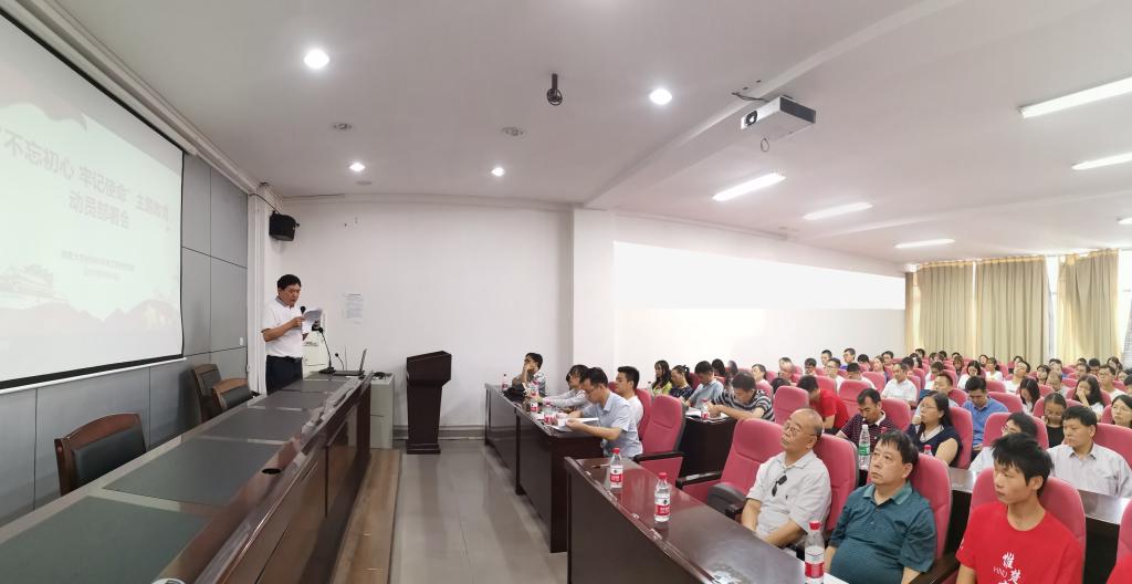 陈孔国同志在会上贯彻了学校“不忘初心、牢记使命”主题教育动员部署会精神,指出要提高政治站位,深刻认识开展主题教育的重大意义;要坚持高标准严要求,扎实抓好主题教育各项任务;要加强组织领导,压紧压实责任,确保主题教育取得实效。他在报告中说,学院已经成立了“不忘初心、牢记使命”主题教育领导小组及办公室,将统筹推进全院主题教育活动。院党委研究制定了实施方案,对主题教育的总体要求、基本原则、着力重点、主要任务、组织领导等方面做出了明确规定,并报学校主题教育督查指导组审定发至各党支部。他还强调,要切实把开展主题教育同贯彻落实习近平总书记关于教育的重要论述结合起来,同落实教育部巡视整改任务结合起来,同推进“双一流”建设结合起来,同推动学院中心工作结合起来,同完成学院的重点任务指标结合起来,同促进学院科学发展上水平结合起来。