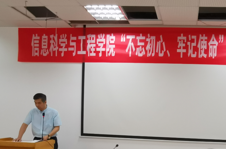 向江对《信息科学与工程学院关于开展“不忘初心、牢记使命”主题教育的实施方案》进行了详细介绍,明确了各基层党组织、党员领导干部和普通党员的任务与要求。