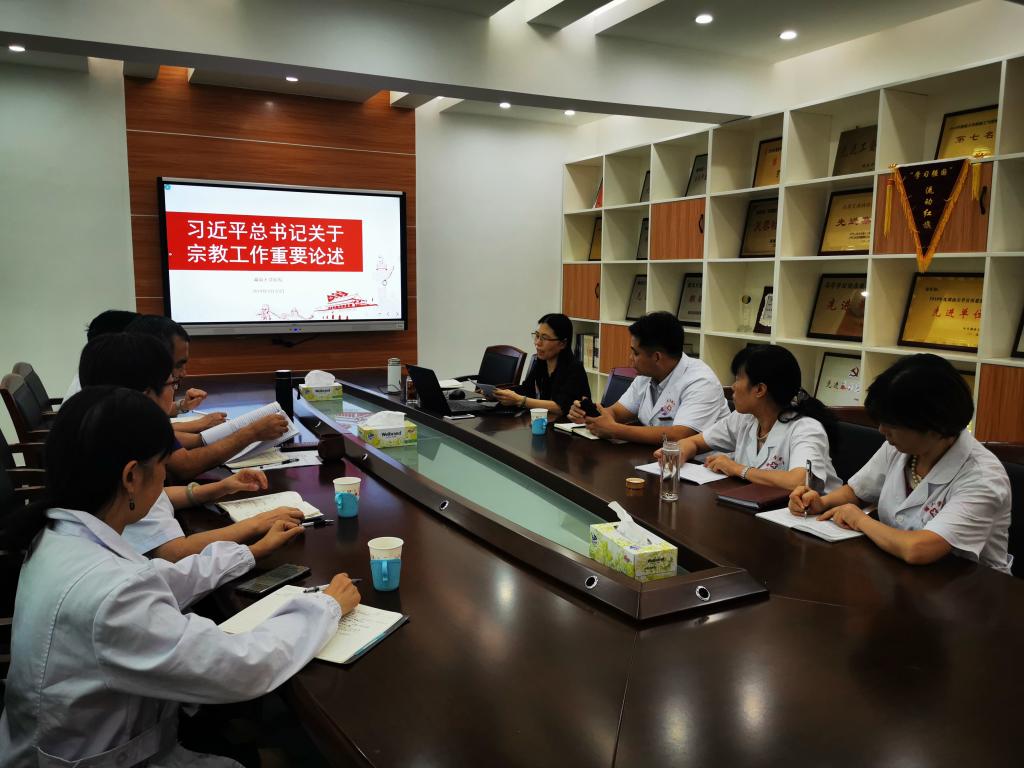 9月20日下午,校医院党总支理论学习中心组宗教工作专题学习会举行。医院党总支委员、院领导班子成员、各党支部书记参加学习活动。院党总支书记张坤主持会议。