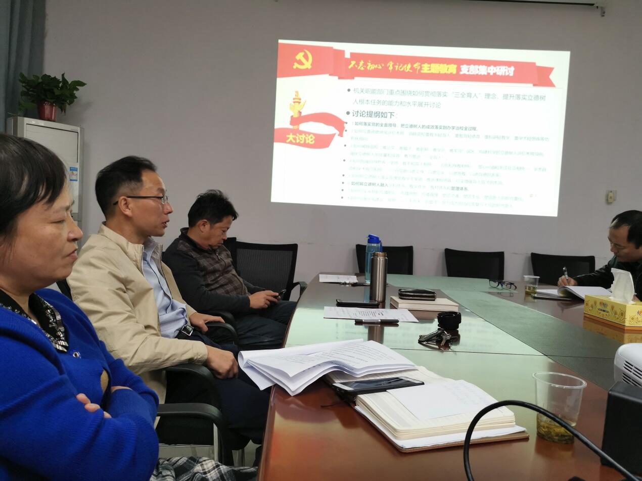10月31日下午,后勤与房地产管理处党支部开展“不忘初心、牢记使命”主题教育集中学习,机关五总支书记杨大钧以“坚持以人民为中心的发展思想 争做新时代合格共产党员”为题讲专题党课。