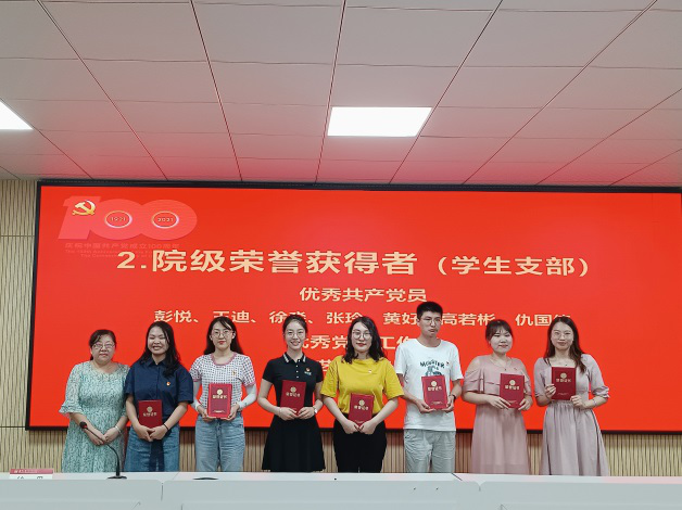 在今年上半年的党史学习教育中,学院涌现出一大批积极分子。教工支部书记朱恬恬、辅导员柏静分别为教工支部、学生支部“党史学习教育”学习积极分子颁发奖状。