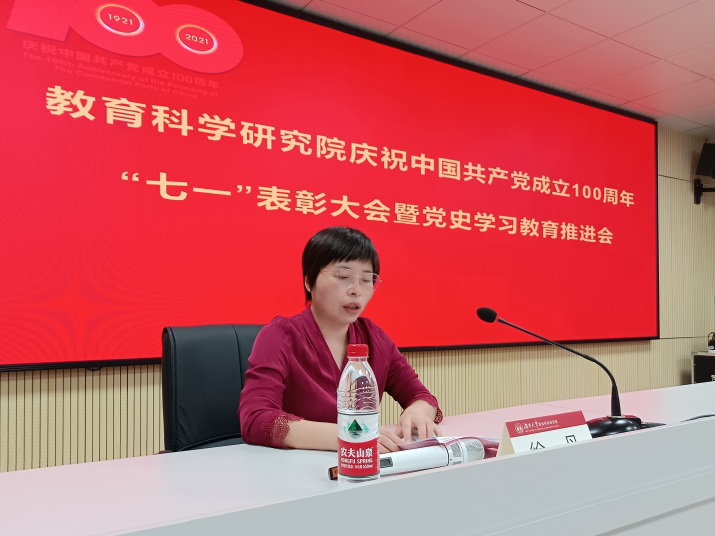 6月30日下午,教育科学研究院庆祝中国共产党成立100周年“七一”表彰大会暨党史学习教育推进会在培训小楼502报告厅举行。tapplay副校长、教育科学研究院院长谢赤,院党总支书记阳征,tapplay党史学习教育巡回指导第四组组员、保卫处副处长刘晚梅出席会议,全院师生党员、入党积极分子参加会议。会议分为两个阶段:党史学习教育专题党课和“七一”表彰大会。